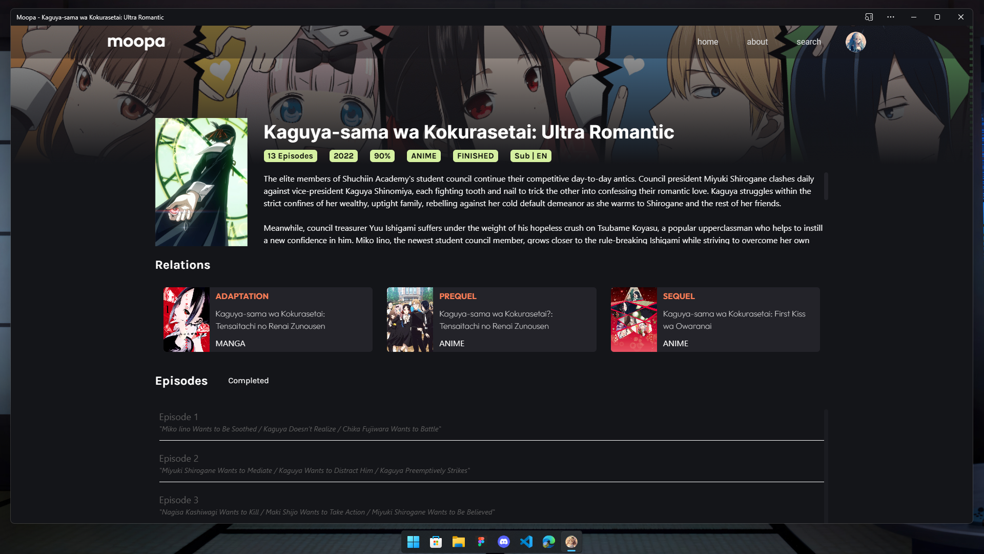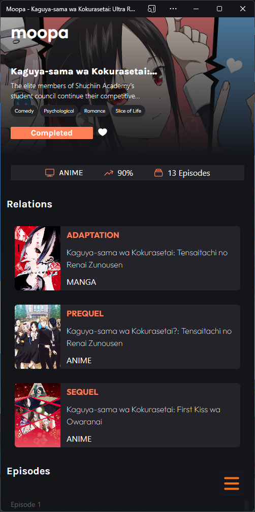 Moopa is an anime streaming website build with nextjs and tailwindcss with a sleek and modern design that offers Anilist integration to help you keep track of your favorite anime series. Moopa is entirely free and does not feature any ads, making it a great option for you who want an uninterrupted viewing experience.